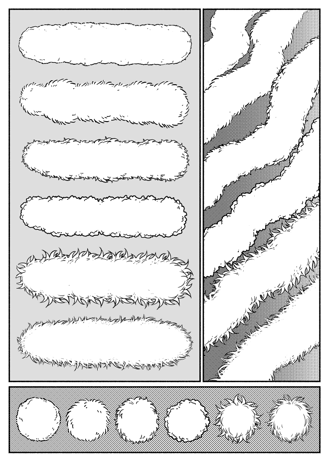 - Fur Brush Set (ファーブラシセット) - by gumama - A brush pack like this is so helpful for artists wanting to draw fur and fluff. Some potential uses for this brush include drawing animal fur and creating furry trim on clothing.