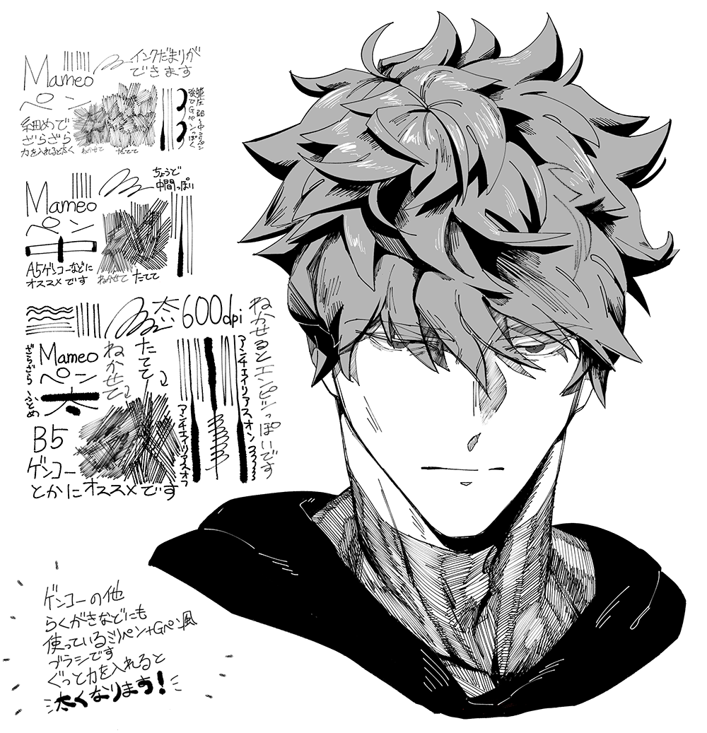- Mameo Pen (Mameoペン) by Mameo - a rough ink pen perfect for drawing line art and making manga illustrations. This brush has a nice sense of weight to it that allows for more expressive strokes. This brush can also be great for sketching out ideas.