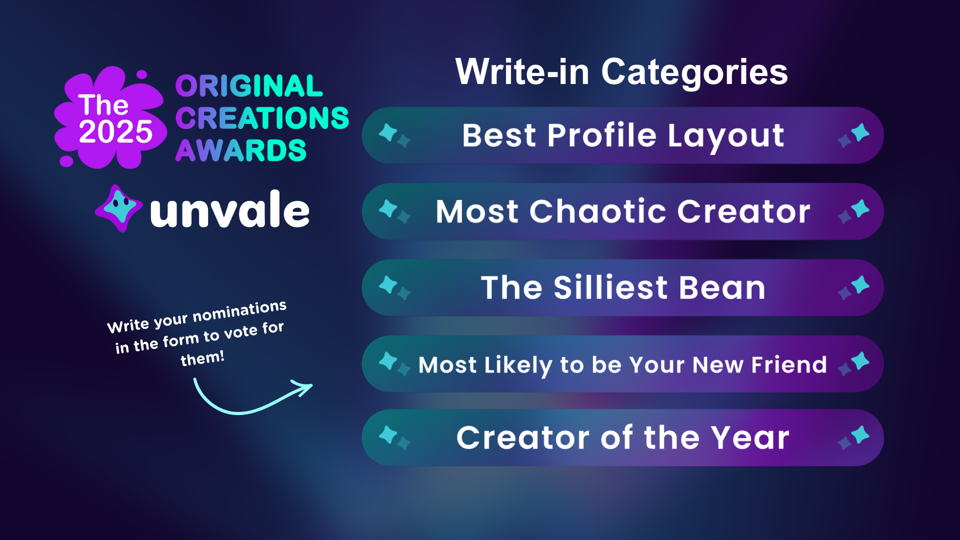 Unvale is hosting our first ever award show, the Original Creations Awards! 🎉🏅