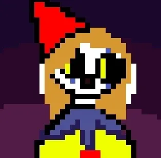 Art of “Clown” by Fruitbat1004. The character has pale skin, yellow eyes, yellow hair, a clown suit and a red cone hat.