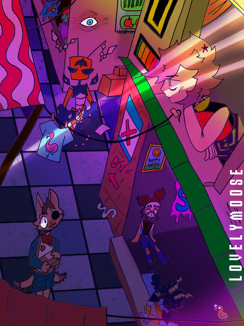 - Create a piece (illustration, writing, or comic) that shows your OC(s) being transported or “glitched” into a world/universe outside of their own. We have a list of collaborative worlds that your OC can glitch into below - pick one (or more) and have fun!