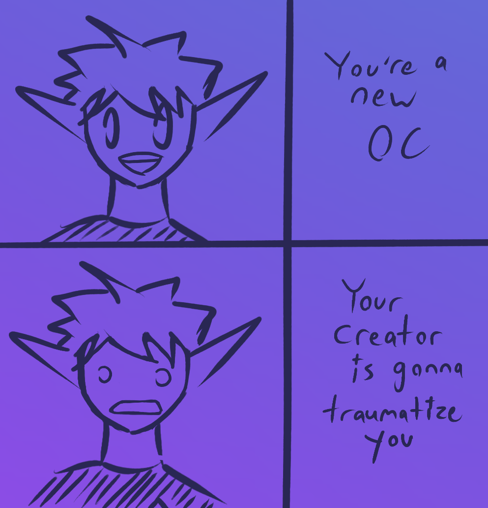 Some of the best memes, in my humble opinion, are just OCs being goofy! Drawing an OC as a silly doodle or in the style of a reaction image can be the most fun for memes. Goofy doodle memes of your OCs can even serve as a fun inside joke with friends!