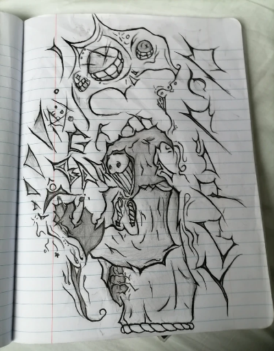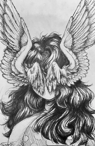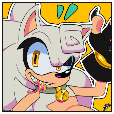 Art of Rouge the bat (AU vers). She’s drawn in black marker– a humanoid bat with large fluffy bat ears, a heart-shaped patch of fur on her chest, and bat wings.