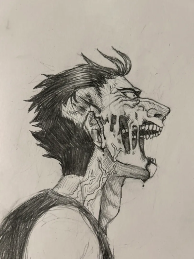 Art of Giovanni. He is portrayed in profile, in grayscale in great pain. His jaw is opening wide and veins are bulging in his neck. He has slicked back black hair.