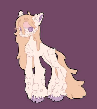 Art of Puffball, a character by Interstellarttz. She has patches of longer fur and puffball mushrooms on their legs. Her mane is blonde and their eyes and hooves are violet.
