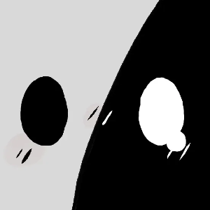 Profile pic of LamoonTheCAT. It is two cartoon eyes in black and white, split through the middle and opposite colors on either side. The right eye has a teardrop in it.