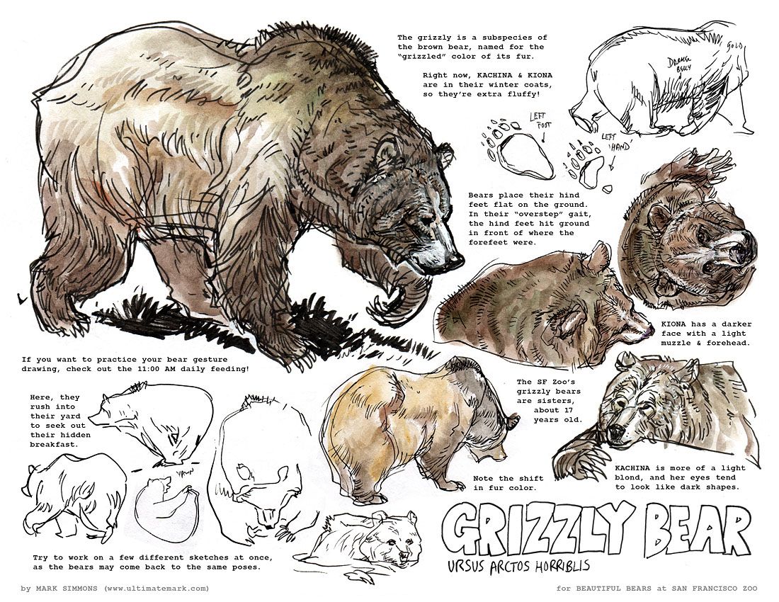 Study from Animals in Real Life! The picture below shows an example from a series of drawing guides created by Mark Simmons. These drawings were made by studying animals at the San Francisco Zoo! Feel free to check out the rest of the series on his website for further examples of his studies. If you want to continue to improve your skills you could also consider finding a habitat for wildlife in your area and studying from observation. You can even find things to study right in your own home!