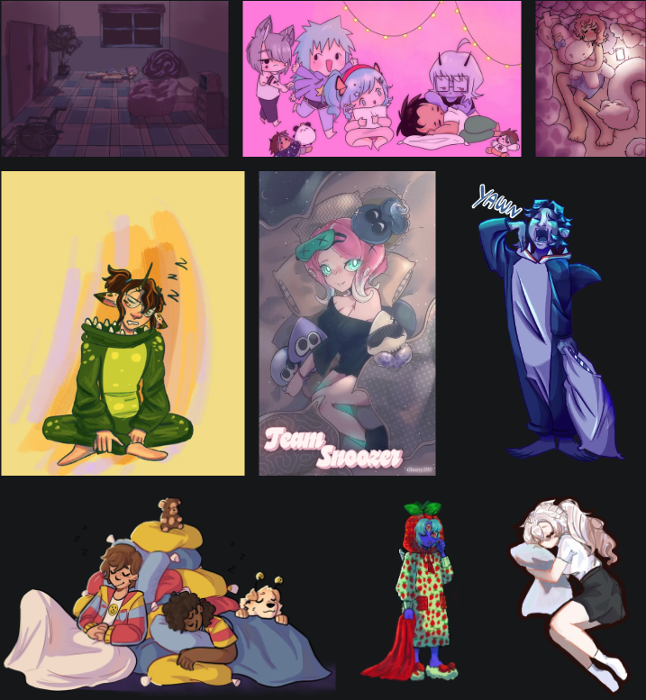 Thank you to everyone who participated in UnVale's first ever competitive event! The Slumber Party was filled with SO many amazing, fun filled, and unique entries. While we decided to step away from our typical mass collaborative image that we had done in past events, we still aim to present new ways to spotlight your lovely creations! This time, we'll be sharing some entries from each team before announcing who won 😏