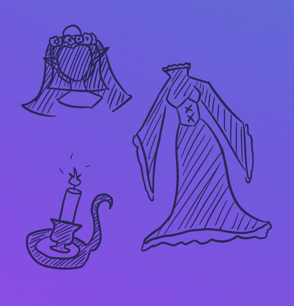 Clothes are a great way to create interest in your ghost’s design! Since their deaths often took place long in the past, their clothes are often worn out or outdated. You could take inspiration from a specific aesthetic, or try researching the kinds of clothes worn in the time period your ghost is from! If you need some clothing ideas to get you started, you can try things such as…