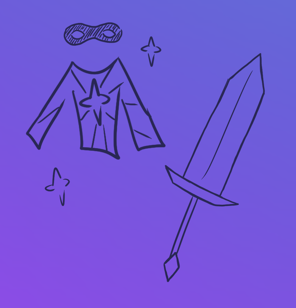 Another factor in a hero design is the accessories and weapons they have! Heroes often have weapons to fight with, or accessories to help them out! If you have a superhero character, they might have tools or gadgets to help them fight! A more fantasy hero might have a more traditional weapon like a sword! Here’s some ideas to get you thinking: