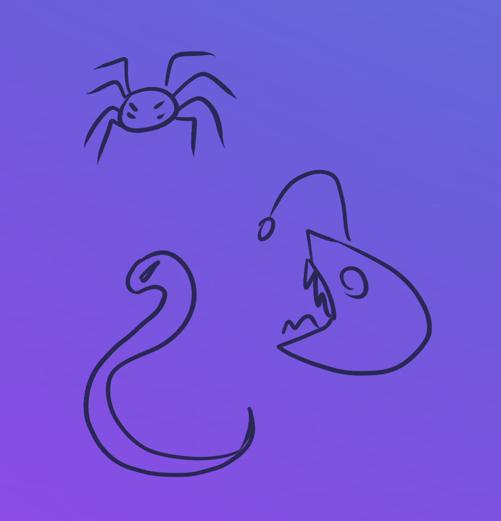 Thinking about what kind of monster you need for your story will help you figure out what kind of design you want for them! Some stories have monsters that function more like animals, while others portray them as a mysterious creature hardly anyone has seen before!