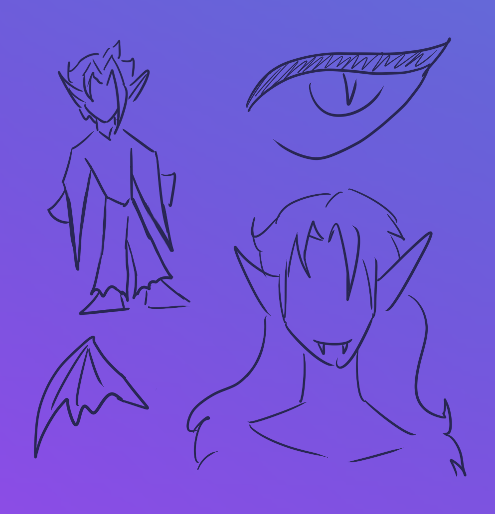 Incorporating shape language into your vampire's design can be a fun way to help your audience know what kind of vampire they are! This can be especially helpful if you have a friendly vampire, but still want to give them a dark aesthetic. They could have more friendly shape language to show that!