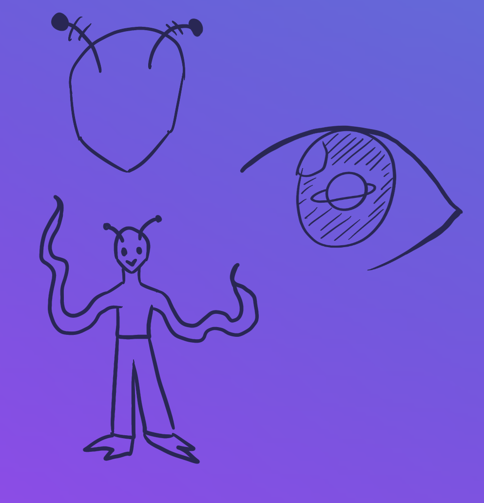 First off! What kind of alien are you designing? There’s many different kinds of aliens, from cutesy ones to scarier ones! Depending on what you’ll use your alien for, and the story you want to tell, you’ll probably have to design them a bit differently than you would a different kind of story! You can try coming up with questions such as…